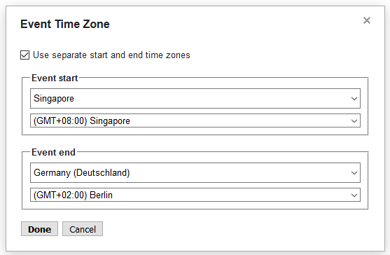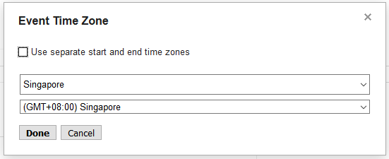 Once this is done, this is how it will show you up in your calendar (assuming that the calendar is set in the Singapore time zone, as mine is).
