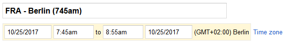 The other thing that I like to do when arranging things in my calendar is to also add the local time for the appointment just to be sure. I know that my phone will be set to the correct time zone when I reach the destination. Adding the local time for an appointment into the description just provides an extra confirmation in case I messed up the entry of the time zone. For example, in the case of the second flight, I add the local time for the flight in the description so that I make sure I get it right.