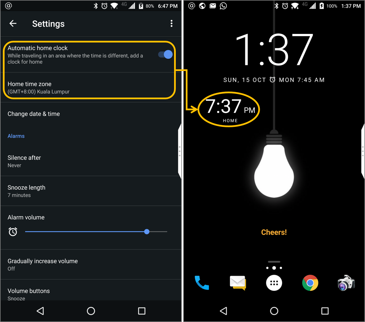 Now, when you’re overseas, the clock widget on the home screen will also show you the time at home. It’s handy to know what time it is so that you don’t call people at midnight!