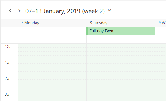 With this in place, you will get the output that you desire – and when you import the resulting file into Office 365 online (or any icalendar-compatible application), it will show up correctly. The Ruby code below shows how to do this wih some simple sample data. Specifically, see lines 12 and 13 that use Icalendar::Values::Date.new to ensure that the date is returned without any timestamp.