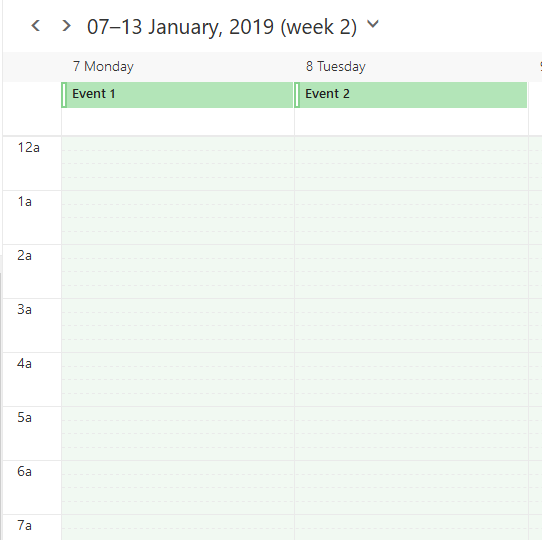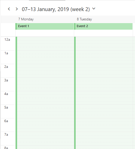 events = [{dt: '2019-01-07', desc: 'Event 1'},{dt: '2019-01-08', desc: 'Event 2'}]