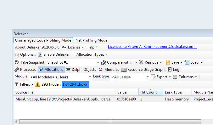 Deleaker - finding leaks in C++ Builder and Delphi projects