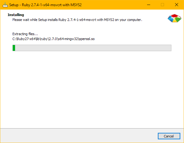 - Download RubyInstaller for Windows: https://rubyinstaller.org/downloads/