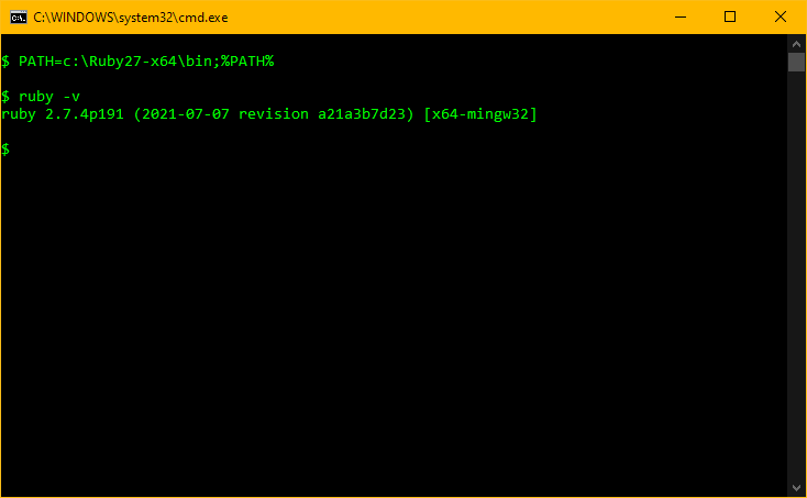 You’re ready to use Ruby 2.7 on Windows – enjoy!