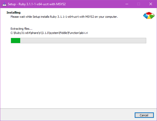 - Download and install Ruby 3.1 on Windows
