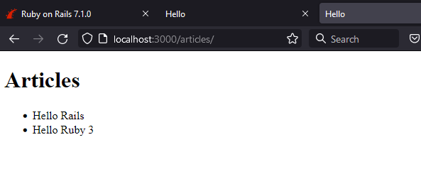 Finally, off to the http://localhost:3000/articles and you will see this.