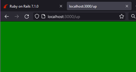 Rails 7.0 added a new up method that can be used to check if the Rails stack has booted successfully. So, you can head on over to http://localhost:3000/up and see a green page.