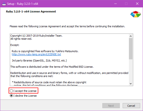- Download and install Ruby 3.2 on Windows